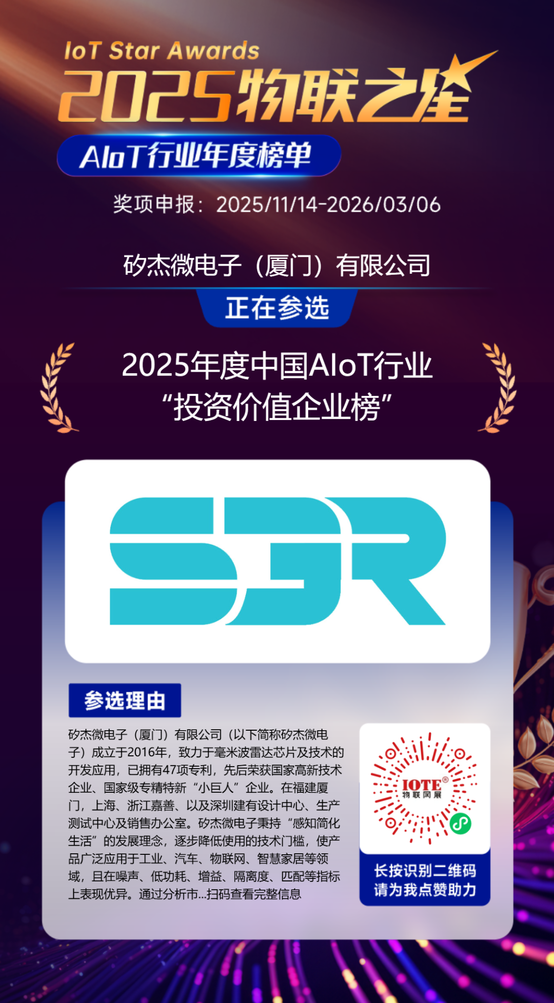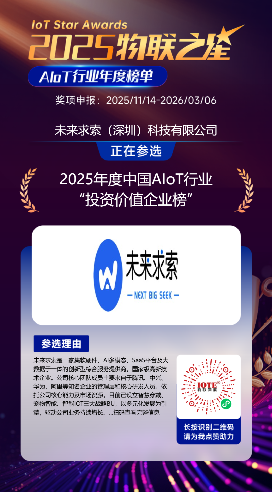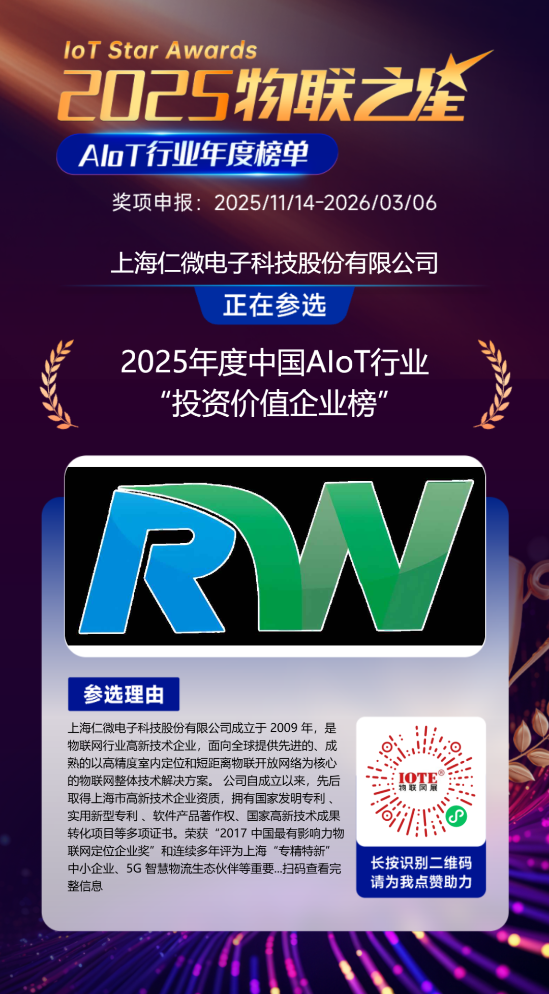 因此,2025“物聯(lián)之星”始終緊扣硬科技企業(yè)的核心價(jià)值邏輯,聚焦那些真正解決行業(yè)痛點(diǎn)、突破技術(shù)壁壘、夯實(shí)產(chǎn)業(yè)根基的優(yōu)質(zhì)企業(yè),最終選舉出真正推動(dòng)中國(guó)產(chǎn)業(yè)升級(jí)的核心力量,為行業(yè)發(fā)展樹立標(biāo)桿典范,也為資本市場(chǎng)挖掘長(zhǎng)期價(jià)值提供清晰指引。
