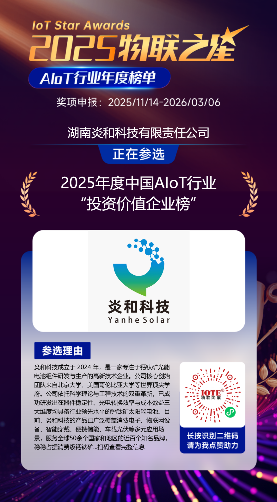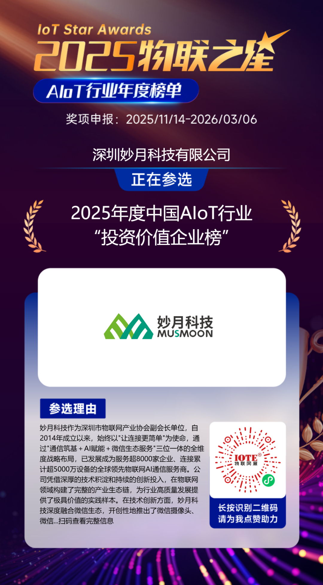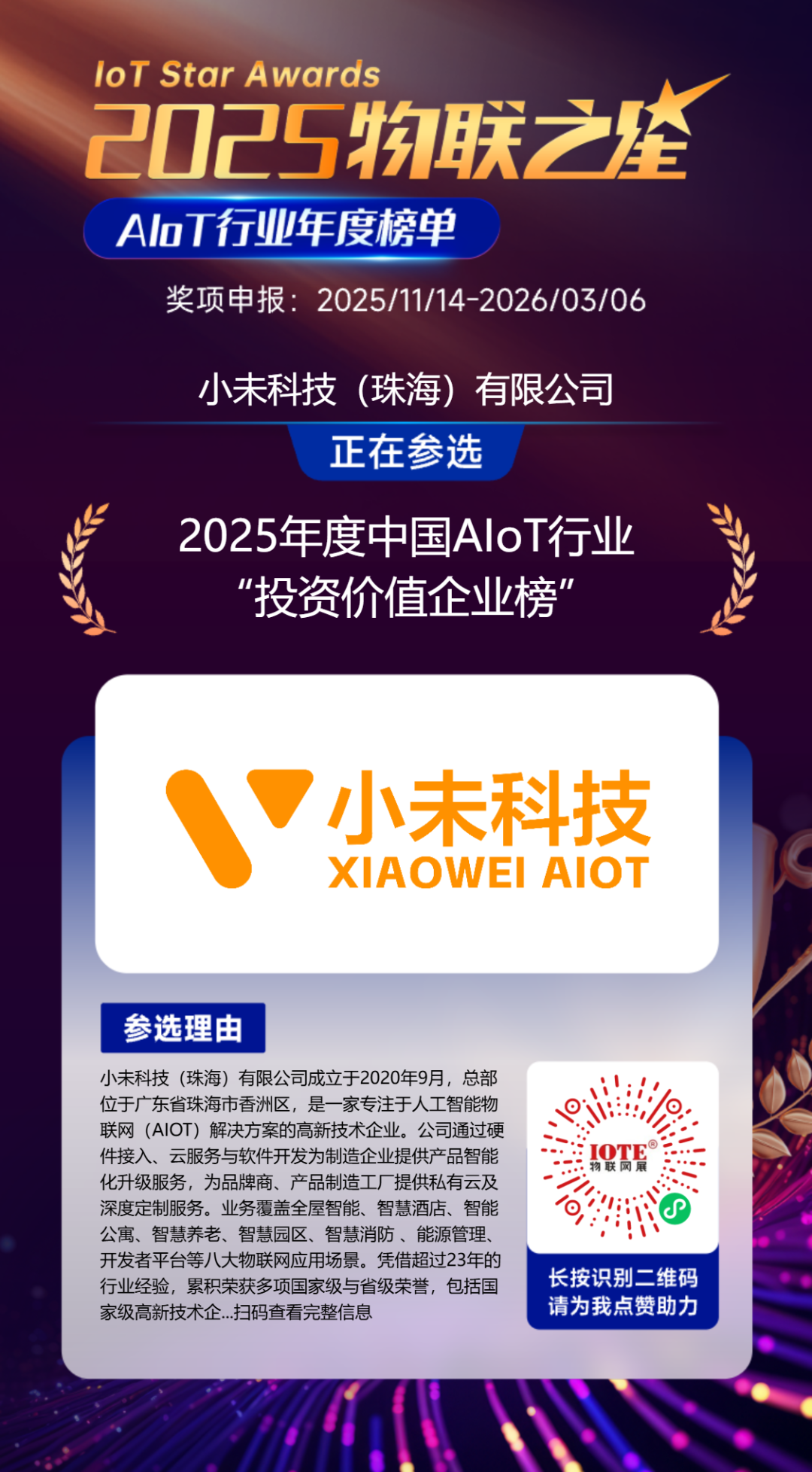 因此,2025“物聯(lián)之星”始終緊扣硬科技企業(yè)的核心價(jià)值邏輯,聚焦那些真正解決行業(yè)痛點(diǎn)、突破技術(shù)壁壘、夯實(shí)產(chǎn)業(yè)根基的優(yōu)質(zhì)企業(yè),最終選舉出真正推動(dòng)中國(guó)產(chǎn)業(yè)升級(jí)的核心力量,為行業(yè)發(fā)展樹立標(biāo)桿典范,也為資本市場(chǎng)挖掘長(zhǎng)期價(jià)值提供清晰指引。